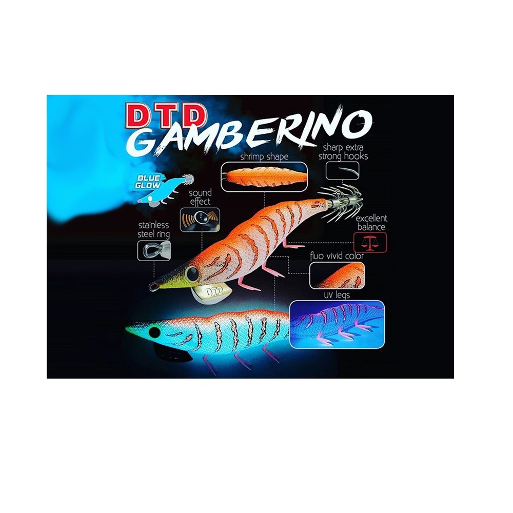 Παρουσιάστηκε για πρώτη φορά στην Έκθεση Efttex 2019. Η DTD Gamberino είναι μια πολύ καλή απομίμηση ζωντανής γαρίδας, σχεδιασμένη να πλησιάζει όσο περισσότερο το σχήμα και μέγεθος φυσικής γαρίδας. Όταν αρχίσετε την ανάκτηση της DTD Gamberino θα διαπιστώσετε ότι έχει την κλασσική κίνηση Eging, μαζί με τη φυσική κίνηση των ποδιών, ο συνδυασμός των οποίων ελκύει τα καλαμάρια από απόσταση. Οι νέες καλαμαριέρες της DTD είναι σχεδιασμένες με εντελώς νέο design, με μπλε φώσφορο στο σώμα τους και γυαλιστερά πλαστικά εμπλουτισμένα με UV ποδαράκια, πιστό αντίγραφο μιας πραγματικής γαρίδας.Τα μάτια της γαρίδας είναι σε μαύρο χρώμα μέσα σε έναν φωσφορούχο κύκλο, προκαλώντας πολύ τα καλαμάρια και τις σουπιές.