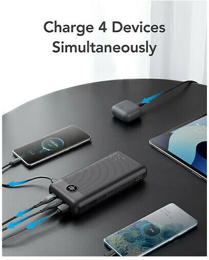 Θύρες: Διαθέτει συνολικά 4 εξόδους (3x USB-A και 1x USB-C) και 2 εισόδους (Micro USB και USB-C).