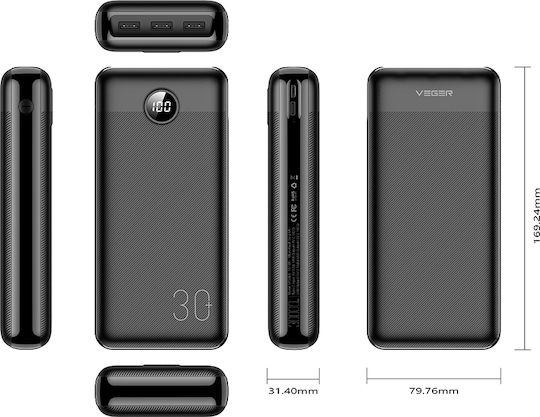 VEGER POWER BANK L30 30000mAh +PD20W +LED Display Screen
